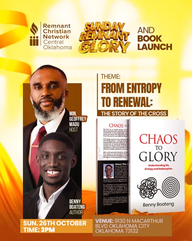 First Stop in Oklahoma City, USA πΊπΈ for the inaugural lecture exploring the central message of Chaos to Glory: understanding life, entropy, and redemption.